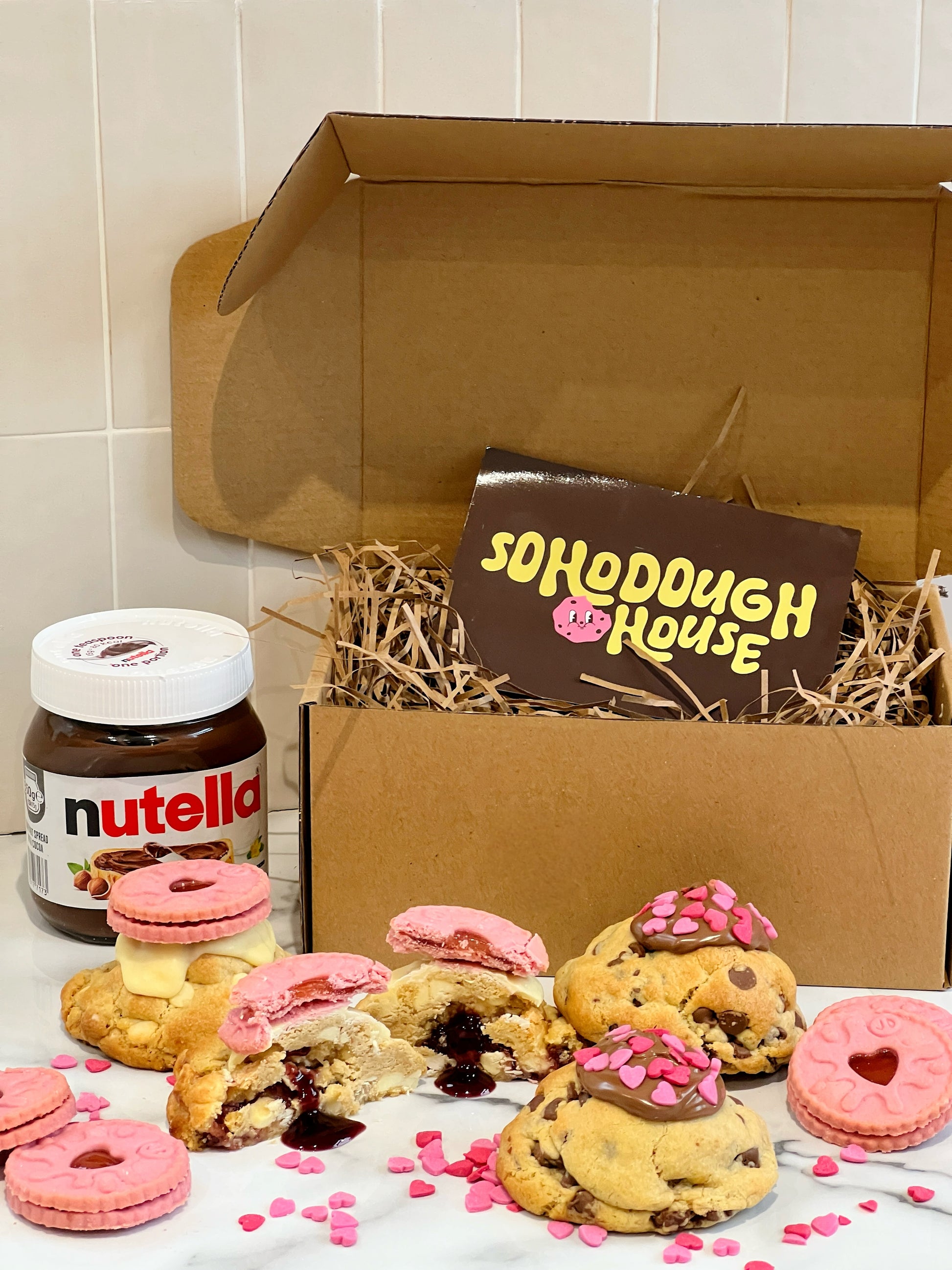 - NUTTY FOR YOU – Milk choc chip cookie stuffed with gooey Nutella, topped with milk chocolate and festive heart sprinkles